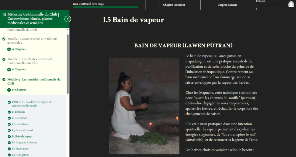 La seule formation francophone dédiée à la médecine traditionnelle chilienne. Ce que nous transmettons ici est un savoir rare, peu documenté, et précieux.