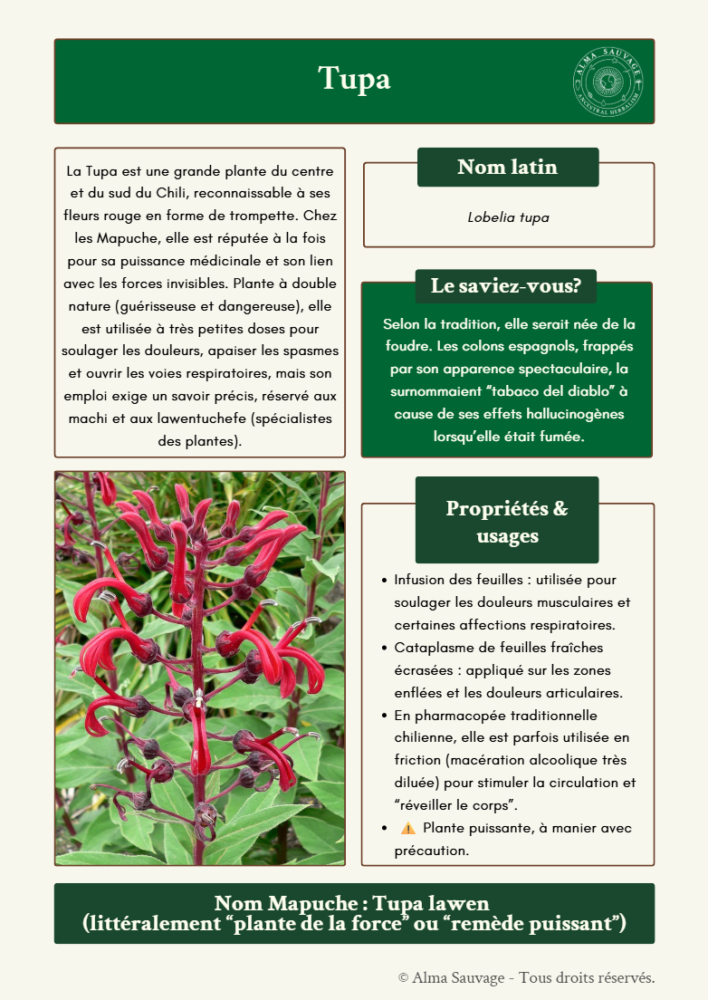 À savoir : Les remèdes sont transmis avec les plantes traditionnellement utilisées au Chili, mais afin que vous puissiez les reproduire, des équivalences de plantes européennes aux propriétés similaires sont également proposées pour chaque recette.