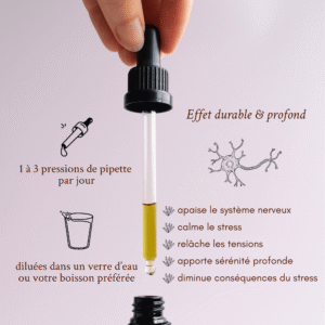 Conseils d’utilisation : Prendre 30 gouttes (l’équivalent d’une pression de pipette) 1 à 3 fois par jour selon le besoin, de préférence en dehors des repas, diluées dans un verre d’eau ou votre boisson préférée.