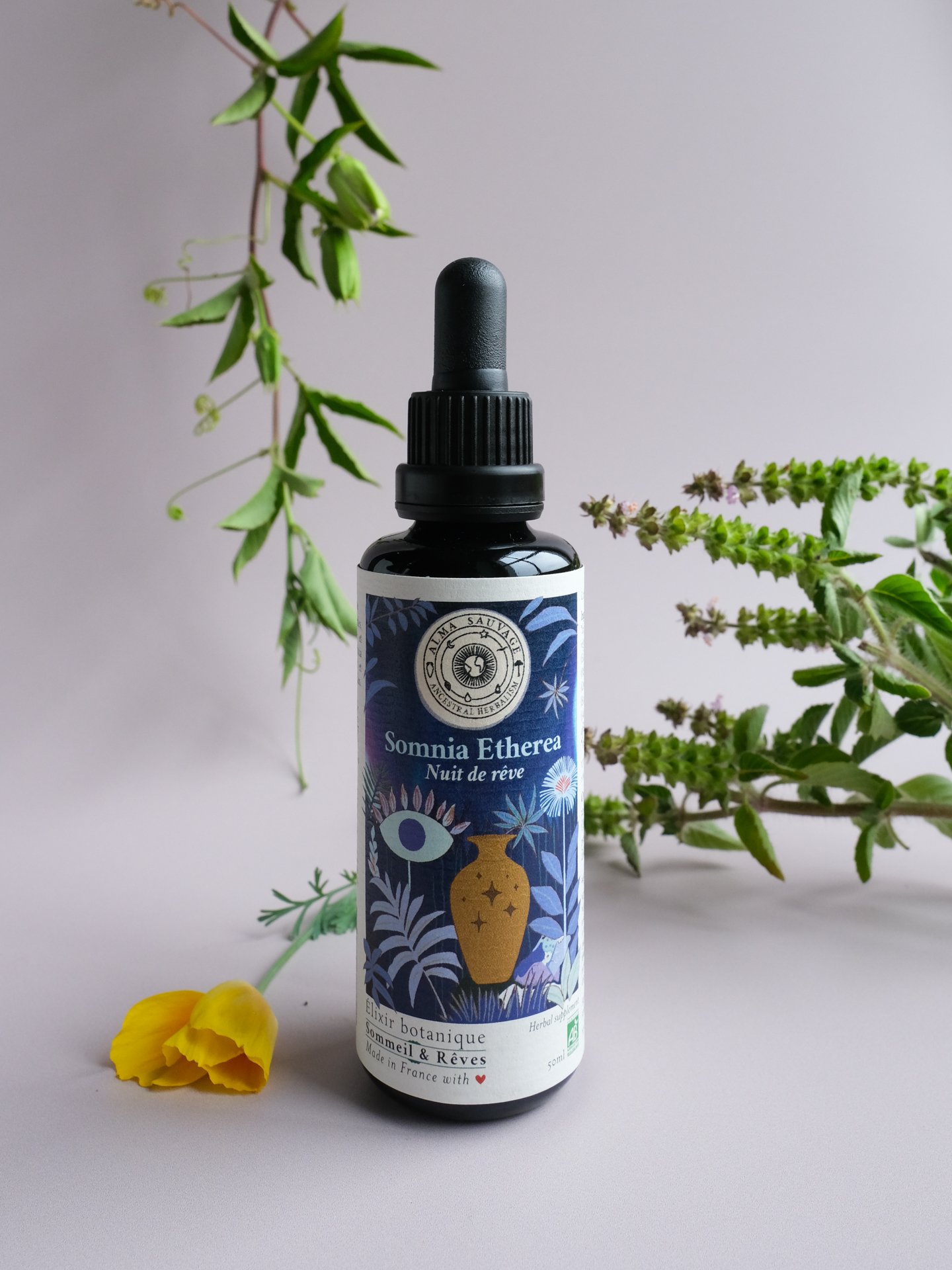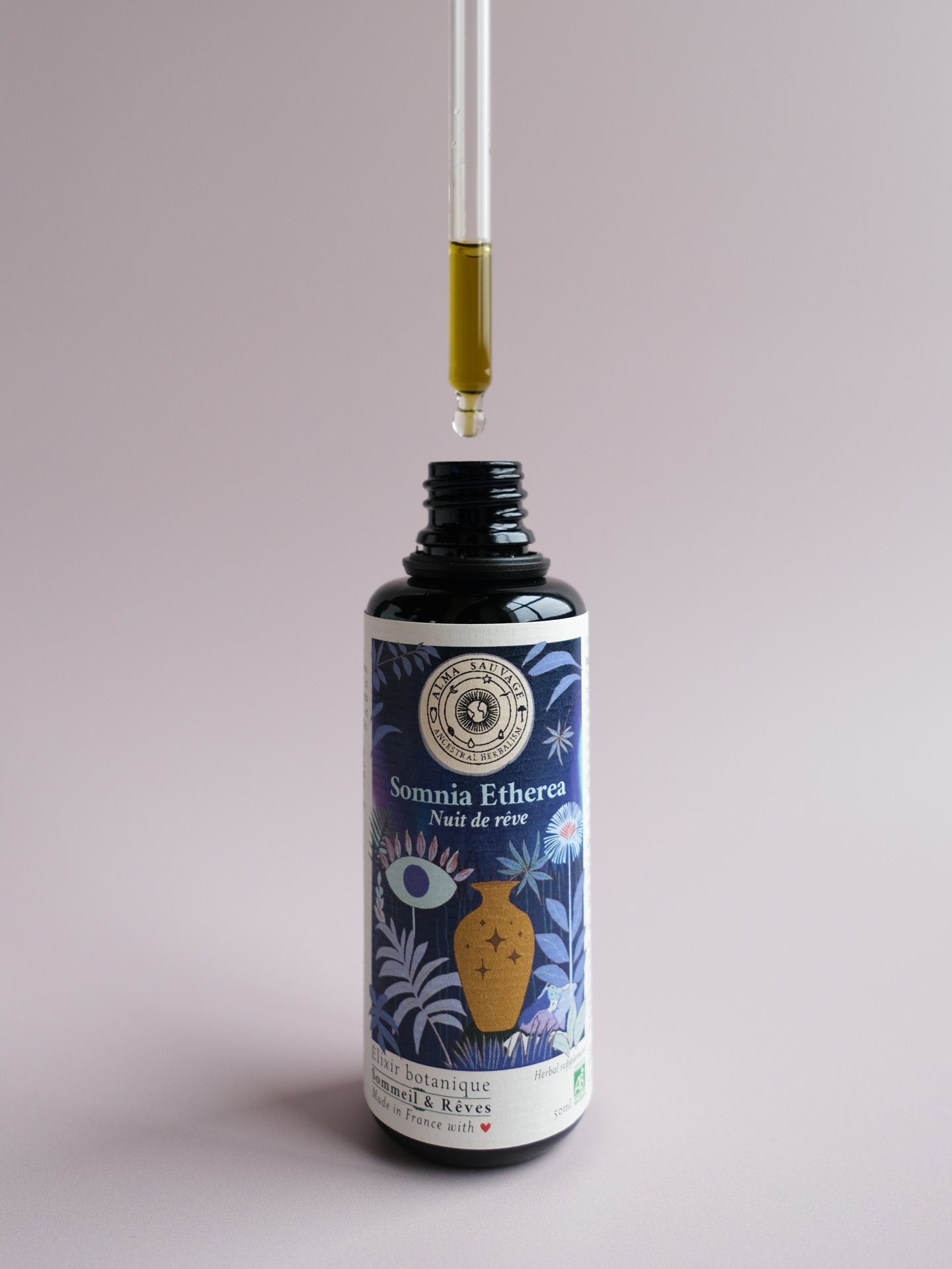 Les 6 plantes de Somnia Etherea ont été cultivées par Marjorie et Alex, duo franco-chilien de paysans-herboristes, dans les montagnes du Pays Basque, sur sol vivant, de manière entièrement naturelle, en agriculture biologique. Une fois récoltées, elles ont été mises à macérer ensemble en amphore de terre cuite. Ce procédé ancestral permet d’extraire leurs principes actifs en synergie, décuplant ainsi leurs bienfaits.