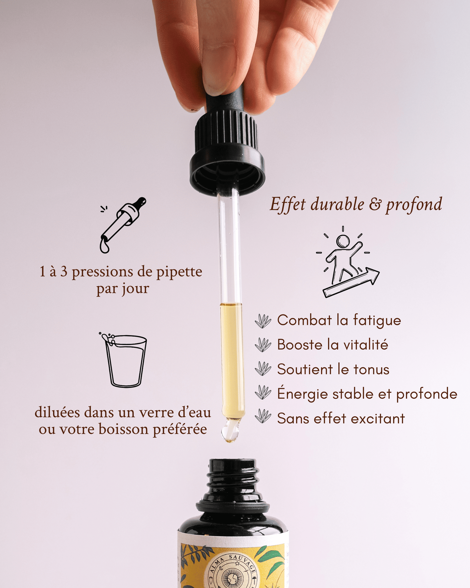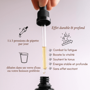 Un élixir botanique 100 % naturel pour soutenir la vitalité profonde, redonner élan et motivation et accompagner les moments de baisse d’énergie physique ou mentale.